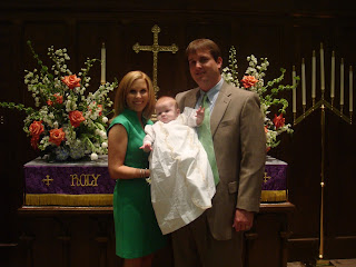 Leyton received the Sacrament of Baptism last Sunday, April 5th at First United Methodist Church. It was such a wonderful day! We thought the weather was going to be bad, but the sun came out and it turned out to be a beautiful day. Leyton did so good during the baptism. He did so good while the preacher walked him around and showed him to everyone! Aubrey sang a beautiful song for this little man on his special day, too. I have to admit, I cried a little bit when Aubrey sang for him. I think it all just hit me at one time how lucky Thornton and I are that God gave us Leyton and that He is letting us raise one of His children. After the baptism, we went to eat lunch at my Mom and Skip's house. Mama and Cheri put on a great lunch for everyone. The food was absolutely wonderful! My dad also got to come down from Biloxi to visit Leyton for a little while. This is the first time he has gotten to see him since he was born! We had a great time visiting him, and Leyton had so much fun with Geno. We hope he comes back soon! Here are some pictures from Leyton's special day.